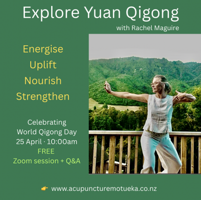 Rachel started teaching Qigong in 2010. She first trained and taught Zhineng Qigong, and now shares the beautiful and powerful Yuan Qigong system - a contemporary, heart-focused Qigong practice designed to uplift life through simple, clear methods that support health, vitality, emotional balance, and inner growth. She is an experienced Yuan Qigong teacher and for the last 15 years has taught many classes, day workshops and also offered longer retreats.